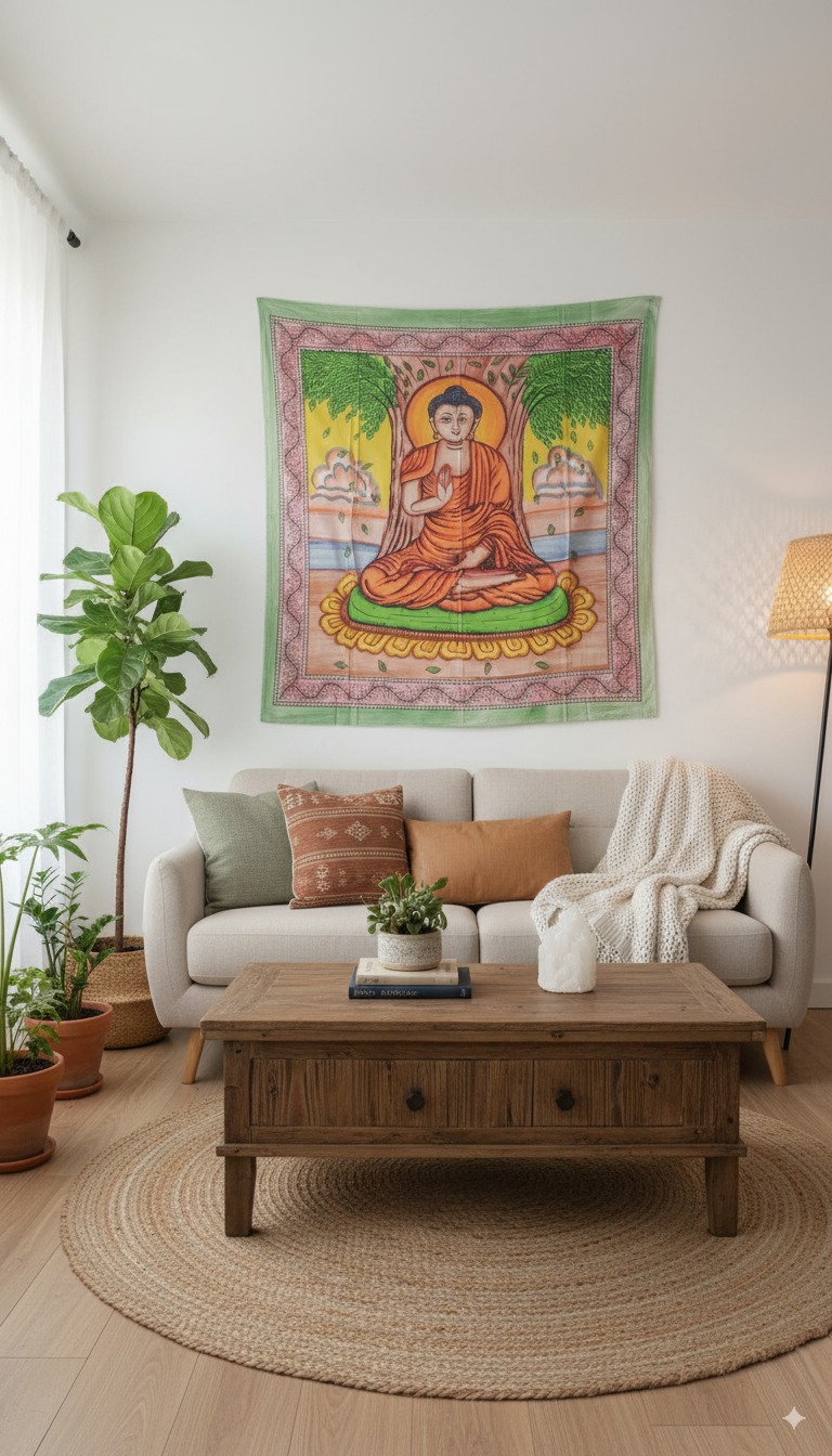 Este cubrecama no solo embellece tu espacio, sino que también aporta una sensación de paz y espiritualidad, reflejando la rica tradición cultural de la India.