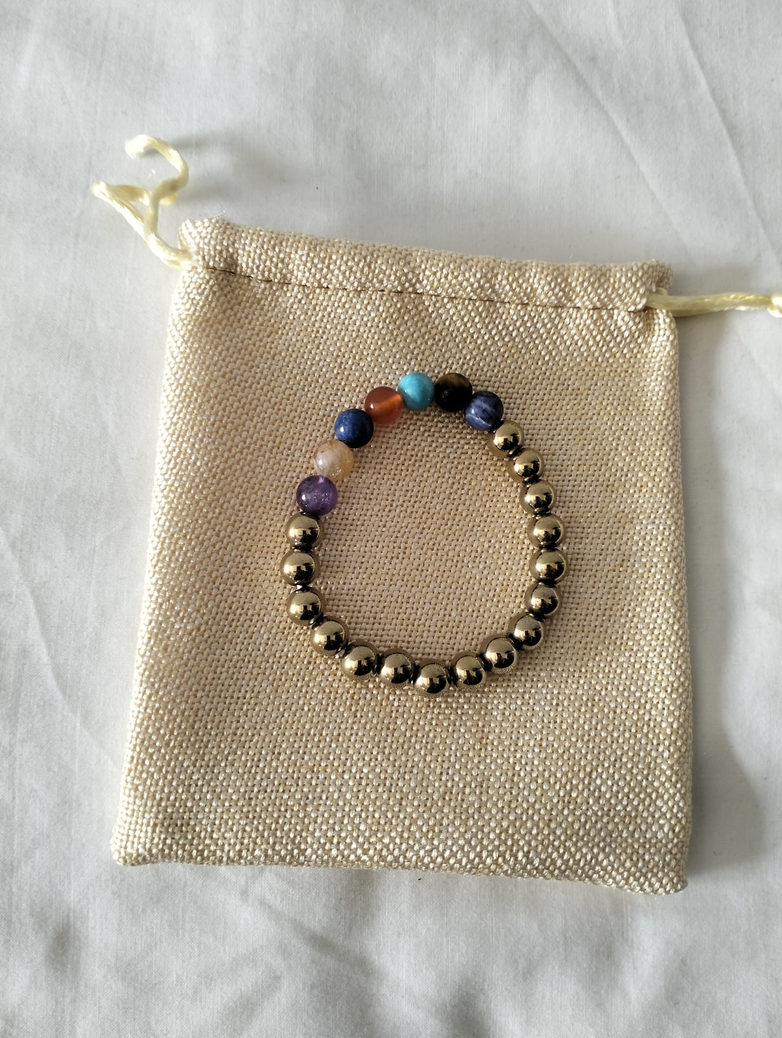 Material: Pirita dorada natural + piedras de los 7 chakras